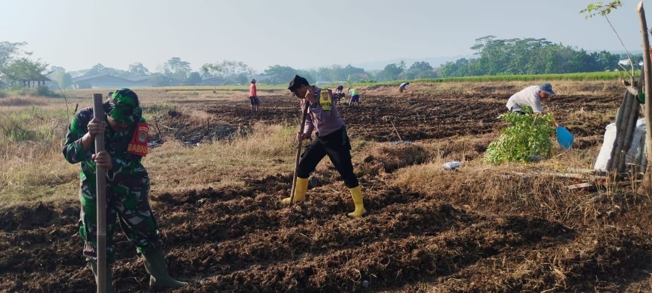 Koramil 0620-13/Sumber Bersama Poktan dan Babinkamtibmas Tanam Jagung di Lahan 1 Hektare