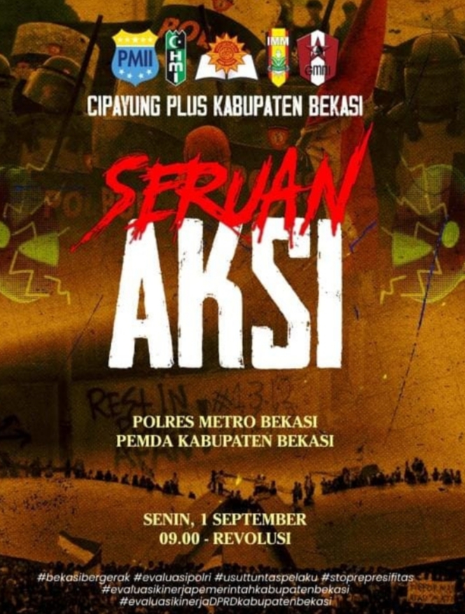 Adapun tuntutan yang akan disuarakan, antara lain mendesak pengusutan secara transparan kasus meninggalnya Affan Kurniawan, pengemudi ojek online di Jakarta yang diduga melibatkan oknum polisi, serta menolak segala bentuk tindakan represif aparat terhadap massa aksi di wilayah hukum Polres Metro Bekasi.