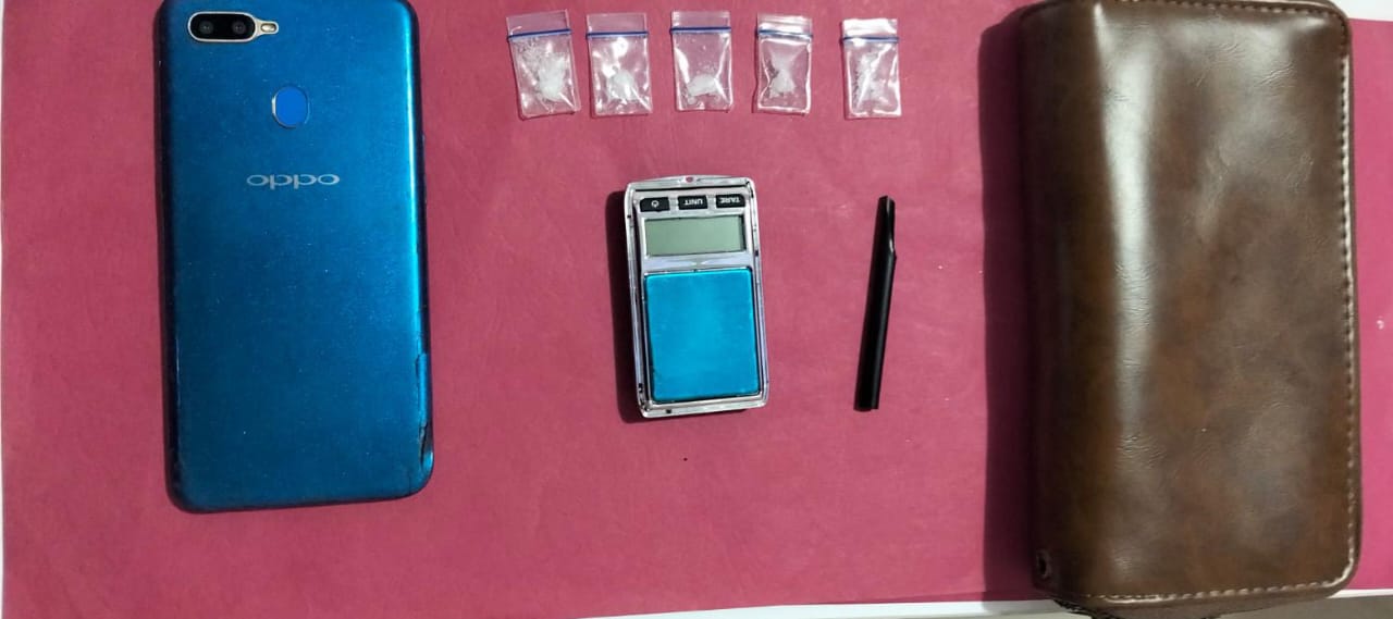“Dari hasil penggeledahan, ditemukan satu dompet berisi lima paket diduga narkotika jenis sabu dengan berat kotor 1,44 gram, satu unit timbangan digital warna silver, satu sendok terbuat dari sedotan plastik, serta satu unit handphone android merk Vivo warna biru,” ungkap IPTU Sinaga.