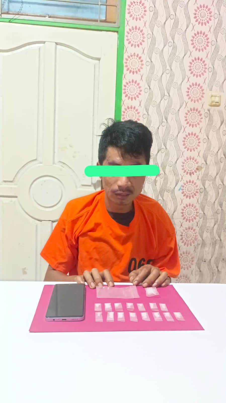 Dari hasil penggeledahan, polisi menemukan 1 plastik bening klip merah berisi 15 paket kecil diduga narkotika jenis sabu dengan berat kotor 2,73 gram, yang disembunyikan di dalam mesin sepeda motor Yamaha RX King dengan nomor polisi BM 2224 JV milik tersangka. Selain itu, turut diamankan 1 unit handphone Android merk Oppo yang diduga digunakan untuk bertransaksi narkoba.