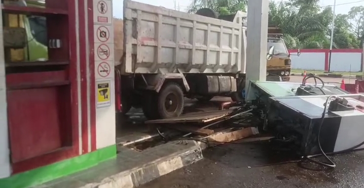 Viral! Truk Tabrak Mesin SPBU, Diduga Berebut Solar Subsidi di Teluk Bakung
