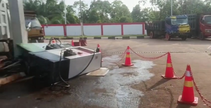 Kubu Raya, Kalimantan Barat,Khbarpetang.my.id // Kejadian di SPBU Lintang Batang, Desa Teluk Bakung, Kecamatan Sungai Ambawang, Kabupaten Kubu Raya, Kalimantan Barat, pada Jumat (10/10/2025) pagi, mendadak viral di berbagai grup WhatsApp warga. Dalam rekaman video yang beredar, tampak sebuah truk menabrak mesin pompa pengisian BBM subsidi jenis solar di area SPBU tersebut.