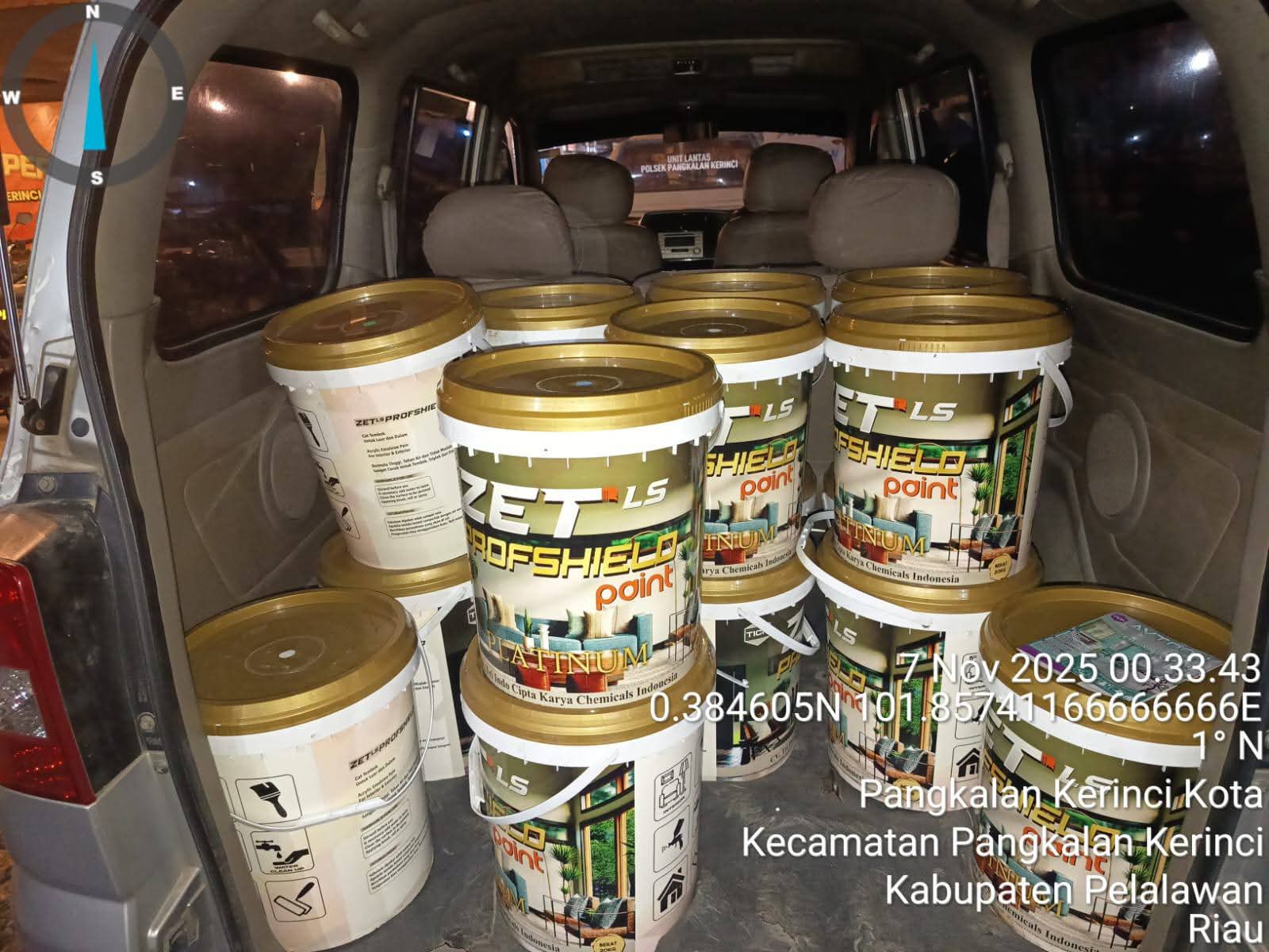 Polisi kemudian mengamankan kelima pelaku beserta barang bukti berupa 134 ember cat merek ZET LS Profshield Platinum serta 1 unit mobil minibus dengan nomor polisi AA 1195 UUZ yang digunakan untuk mengangkut barang tersebut.