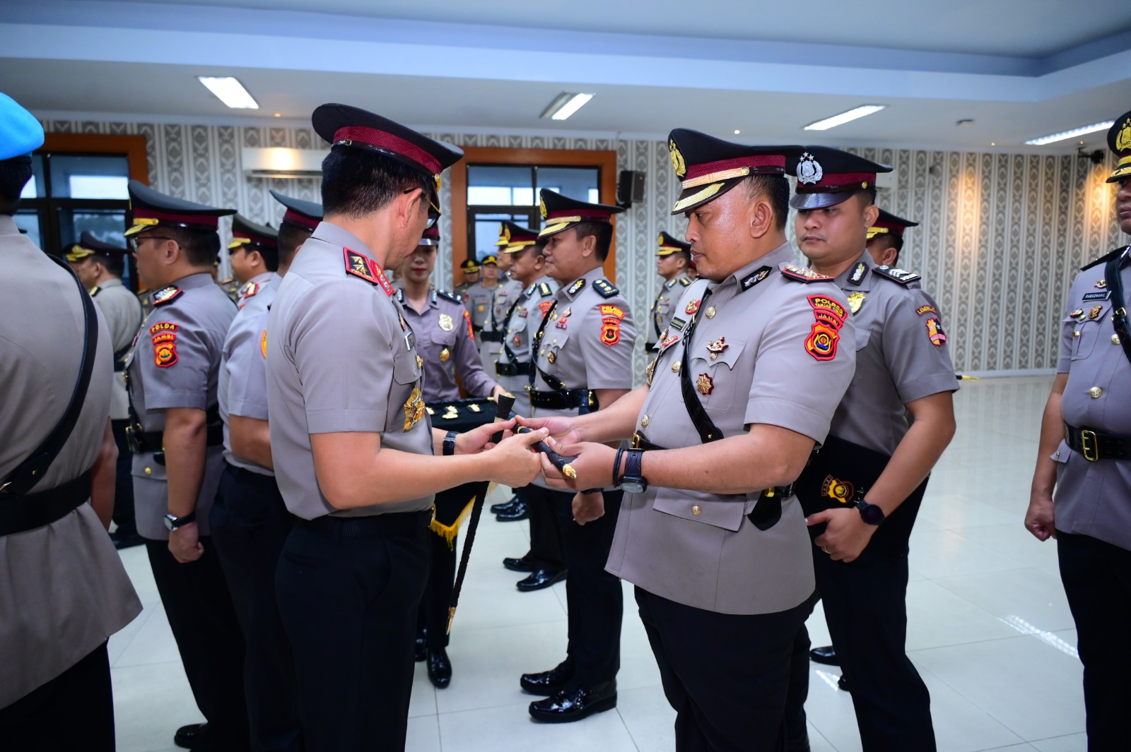 Upacara Sertijab ditandai dengan penandatanganan berita acara serah terima jabatan, pengambilan sumpah jabatan, serta penyerahan memori jabatan, yang disaksikan oleh Pejabat Utama Polda jambi, para Kapolres jajaran, perwira, serta undangan terkait.