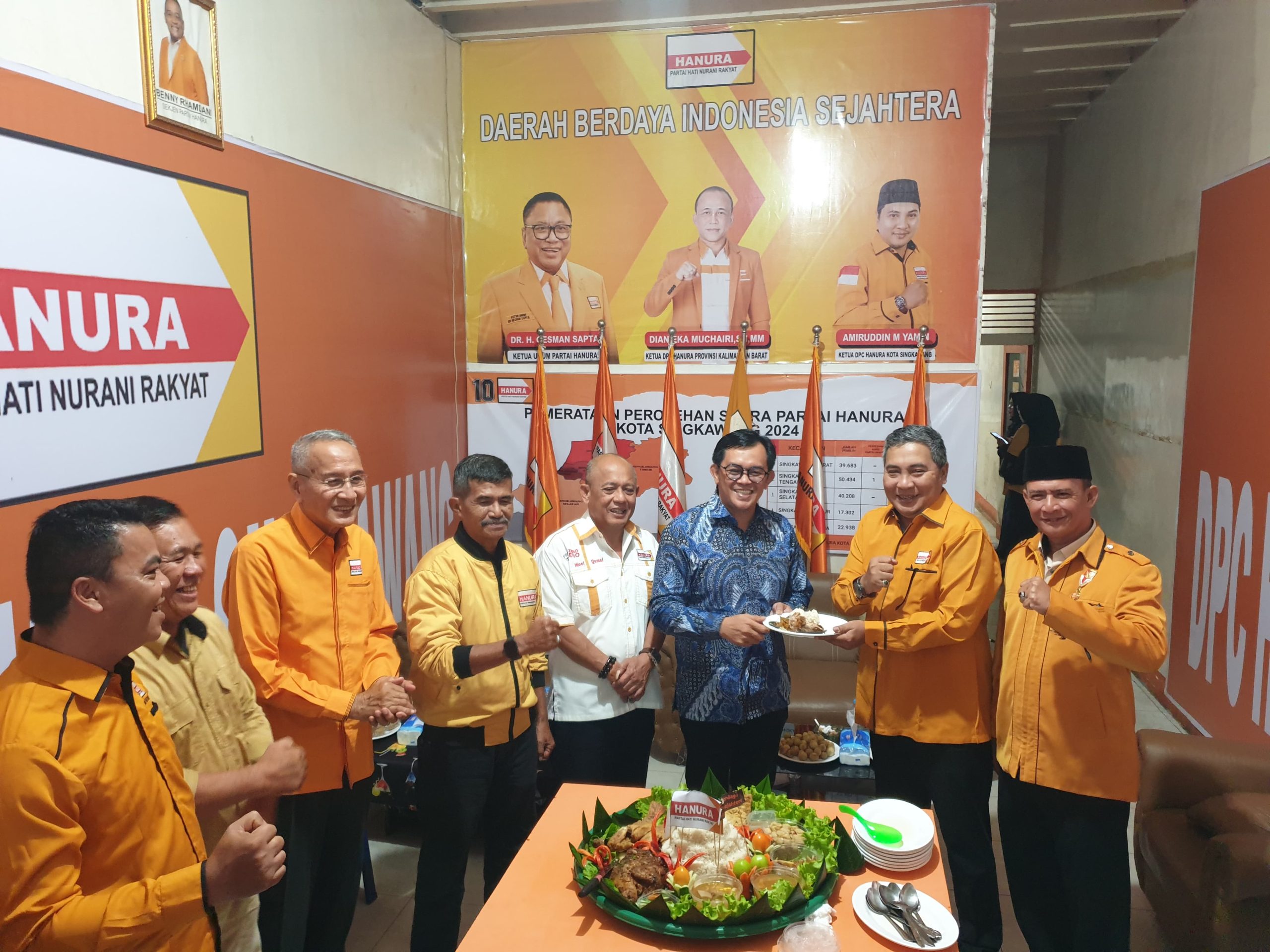 *KhabarPetang* Singkawang, Kalbar – Partai Hanura Kota Singkawang merayakan ulang tahun ke-19 di kantor DPC Partai Hanura Kota Singkawang. Acara ini diawali dengan sambutan dari Ketua DPC Partai Hanura Kota Singkawang, Amirudin M. Yamin, yang dilanjutkan dengan sambutan dari Wakil Wali Kota Singkawang sebagai partai koalisi. Acara kemudian dilanjutkan dengan pemotongan tumpeng sebagai tanda ucapan rasa syukur kepada Allah SWT atas keberlangsungan partai Hanura dalam berkarya untuk kemajuan bangsa dan negara.