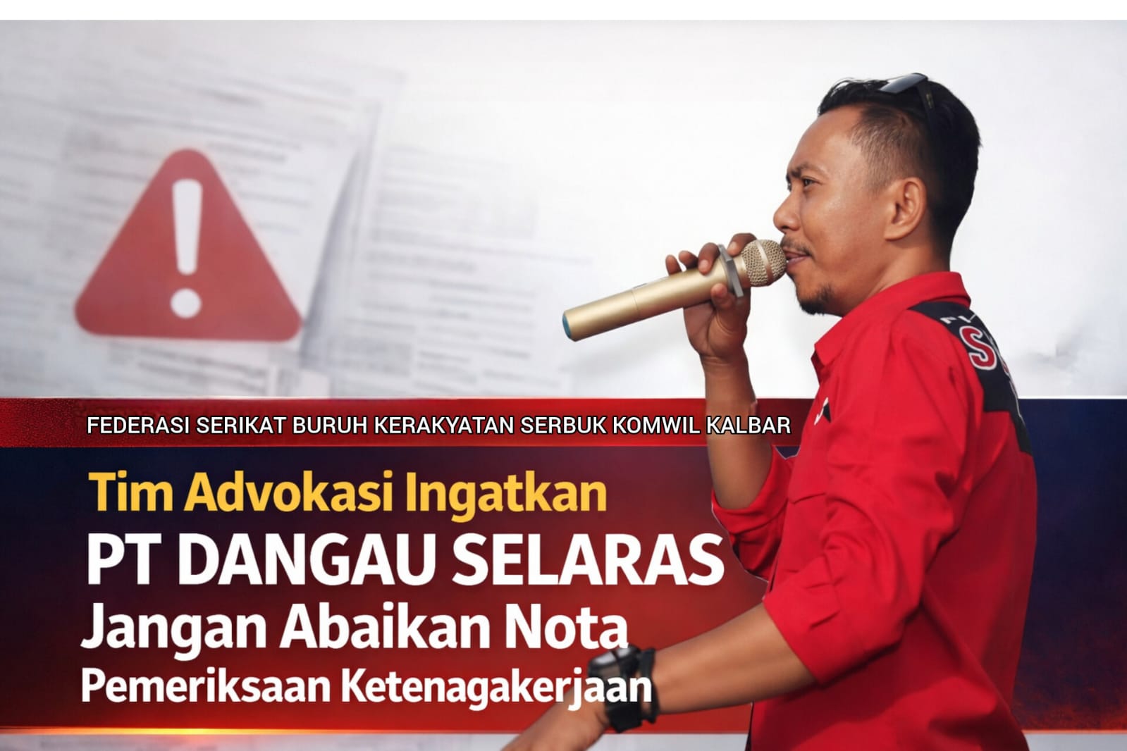 Hal tersebut disampaikan oleh MAHISHA AGNI yang biasa akrab dipanggil Bung Mesa, selaku Tim Advokasi Federasi Serbuk Komwil Kalimantan Barat, menanggapi sikap perusahaan yang hingga kini dinilai belum menunjukkan itikad baik dalam menindaklanjuti hasil pemeriksaan resmi dari negara.