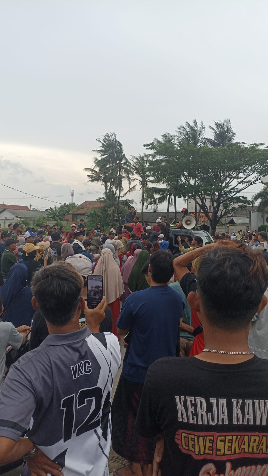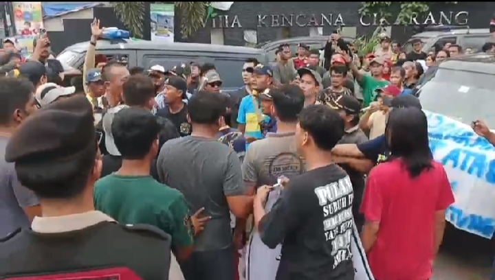Kabupaten Bekasi – Ratusan warga Perumahan Villa Kencana Cikarang, Desa Sukajadi, Kecamatan Sukatani, Kabupaten Bekasi, menggelar aksi unjuk rasa di depan kantor developer Arrayan pada Minggu (22/2/2026). Aksi tersebut dilakukan sebagai bentuk protes atas persoalan banjir yang dinilai tak kunjung terselesaikan.