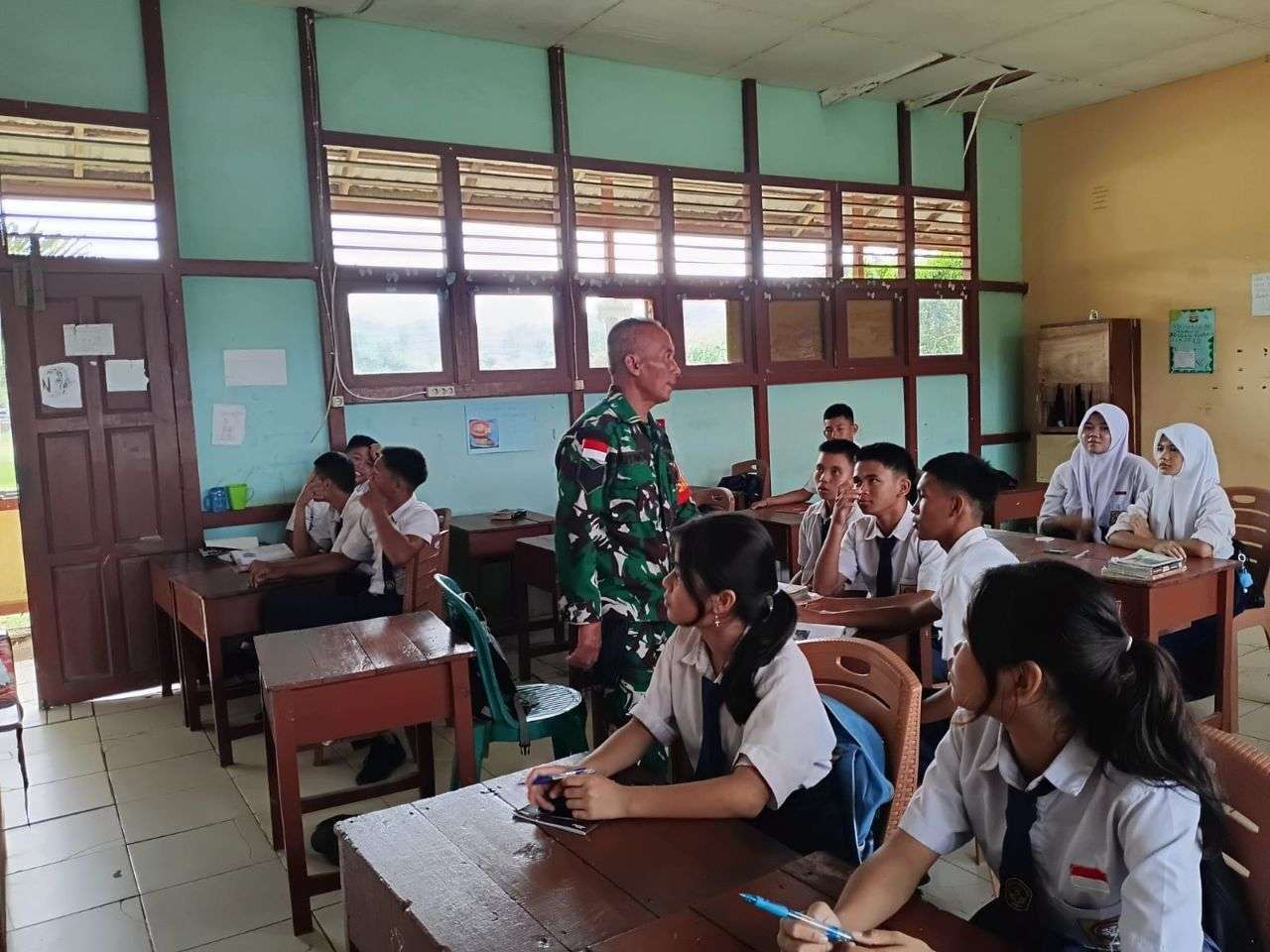 Kegiatan yang berlangsung atraktif ini menyasar para pelajar sebagai aset vital di wilayah perbatasan Indonesia-Malaysia. Di hadapan puluhan siswa, Babinsa menekankan pentingnya menjaga identitas bangsa di tengah gempuran arus globalisasi.