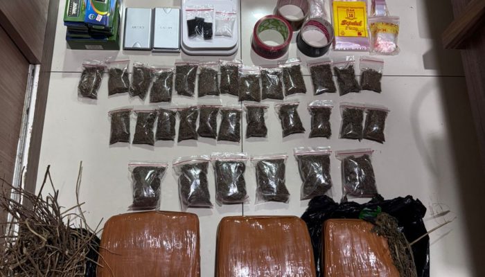 Selain narkotika, petugas juga mengamankan tiga unit timbangan digital, satu unit telepon genggam, plastik klip, lakban, kertas papir, serta buku panduan terkait ganja yang diduga digunakan untuk mendukung aktivitas peredaran.
